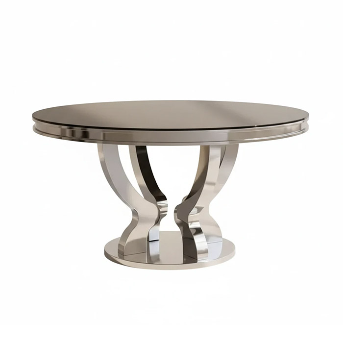 میز تالار مدل لاله با طراحی زیبا و مجلسی، گزینهای مناسب برای تالارهای پذیرایی، باغ تالارها و سالنهای مراسم است که با بدنه فلزی مقاوم و صفحه شیشه سکوریت ۸ میل، ترکیبی از استحکام، ایمنی و جلوهای لوکس را فراهم میکند و بهراحتی با انواع دکوراسیونهای رسمی و تشریفاتی هماهنگ میشود.